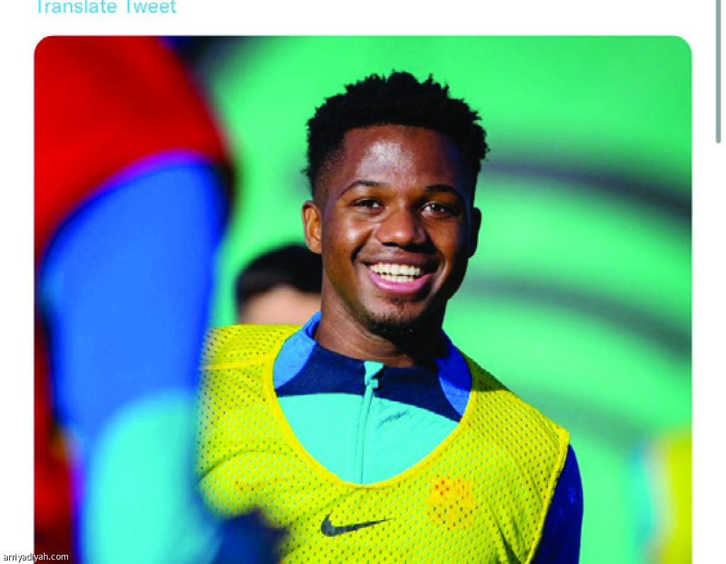 نشر حساب نادي برشلونة الإسباني في منصة “تويتر”، أمس، صورةً للإسباني أنسو فاتي، مهاجم الفريق الأول لكرة القدم، خلال التدريبات، وعلَّق عليها: “دامت لك الابتسامة”.
