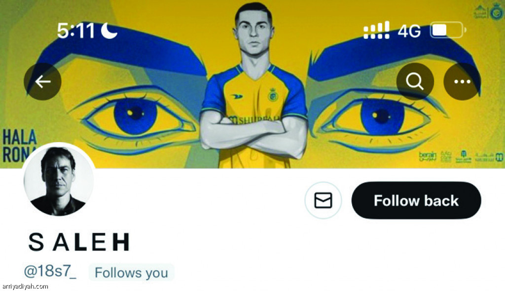 يعدُّ المغرد صالح، الذي يتابعه نحو 21 ألفًا في منصة “تويتر”، أحد المهتمين برياضة كرة القدم، خاصةً ناديه المفضل النصر.. وفي حواره مع “الرياضية”، تحدث صالح عن قدوم البرتغالي كريستيانو رونالدو، وتوقعاته لبطل دوري روشن السعودي.