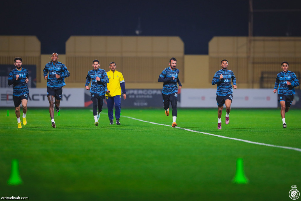ويتدرب الفريق الإسباني على ملعب النصر استعدادًا للقاء فالنسيا، الأربعاء، في كأس السوبر الإسباني.