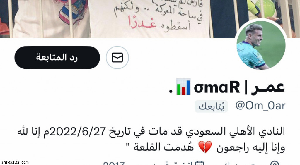 يعدُّ المغرد عمر، الذي يتابعه نحو 22 ألفًا في منصة “تويتر”، أحد المهتمين برياضة كرة القدم.. وفي حواره مع “الرياضية”، تحدث عن صفقة البرتغالي كريستيانو رونالدو مع نادي النصر، وسبب دخوله عالم “تويتر”.