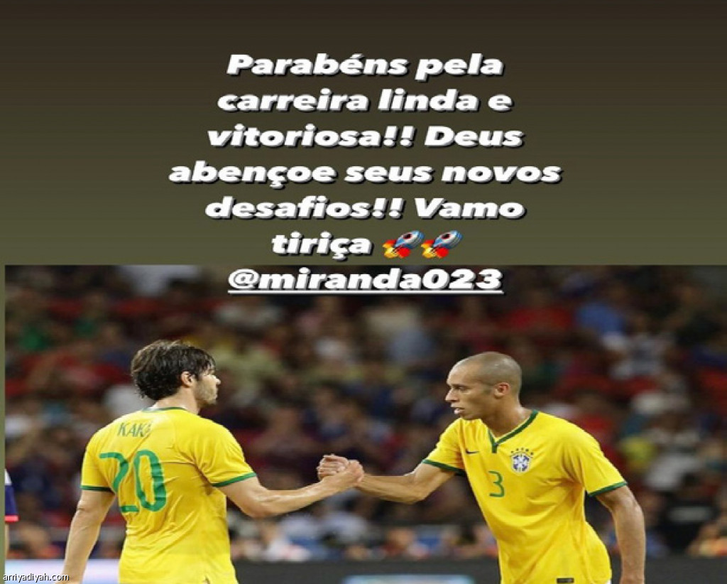 تمنى ريكاردو إيزيكسون “كاكا”، نجم الكرة البرازيلية، عبر “إنستجرام”، أمس، التوفيق لمواطنه ميراندا، المدافع، بعدما أعلن اعتزاله كرة القدم.