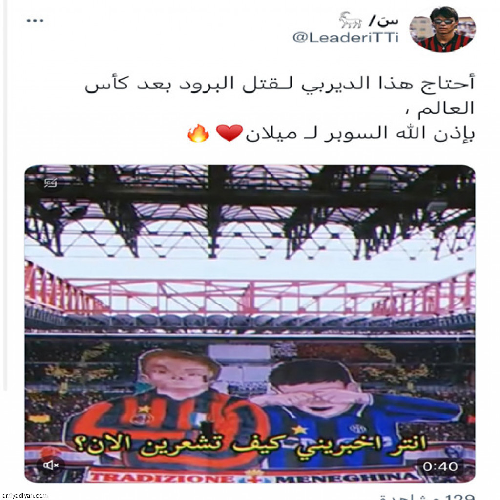 وجاءت أغلب التغريدات من أطراف “الديربي” مؤكدةً الثقة بنيل الكأس، حيث سأل “مو” من قلب منطقة ميلانو في “بوليفارد وورلد”: “هل ستصبح ميلانو زرقاء كما هي دائمًا، أم حمراء وتحدث المعجزة كما حدثت بالإسكوديتو العام الماضي؟”، بينما تمنَّى “ليدر” الفوز قائلًا: “احتاجه لقتل البرود بعد كأس العالم، السوبر ميلاني”.