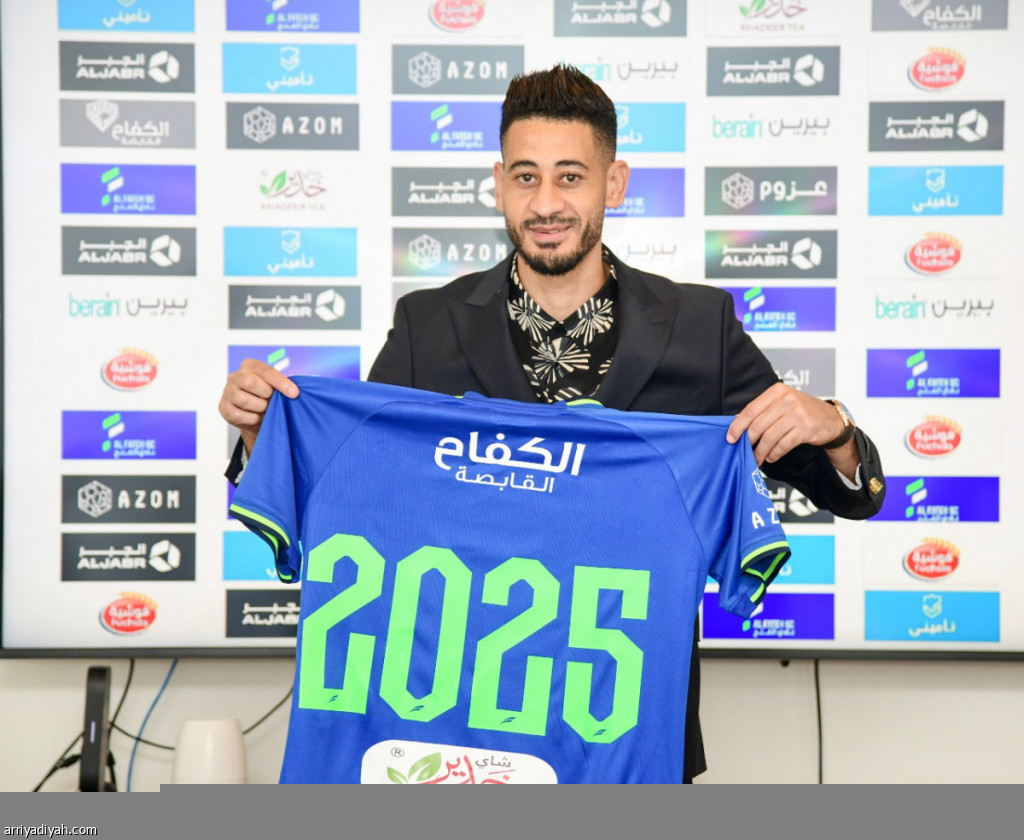 صورة التقطت أمس للمغربي مراد باتنا، لاعب فريق الفتح الأول لكرة القدم، بعد تجديد عقده حتى عام 2025(المركز الإعلامي - الفتح)