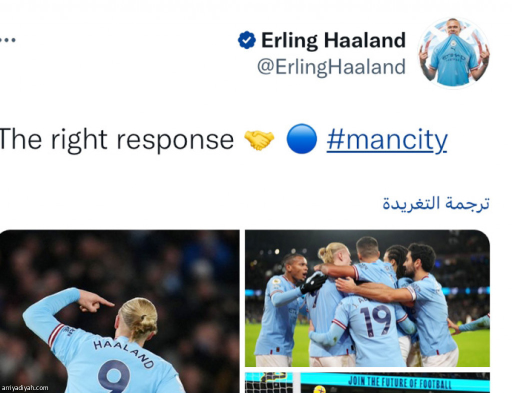سيطرت تغريدة النرويجي إرلينج هالاند، مهاجم فريق مانشستر سيتي الأول لكرة القدم، على اهتمامات مستخدمي موقع التدوينات القصيرة “تويتر”، وعبّر هالاند في تغريدته عن سعادته بعودة فريقه بعد تأخرهم بهدفين إلى انتصار “4ـ2” عند مواجهتهم توتنهام، أمس الأول. ونالت تغريدة هالاند 382 ألف مشاهدة، و303 ردود، و1.4 ألف إعادة تغريد، و22 ألف إعجاب خلال ساعة من بثها، وانقسمت الردود ما بين مغردين مطالبين بعودته إلى مستوياته قبل التوقف لكأس العالم قطر 2022، وآخرين وصفوه بالأفضل على الإطلاق.