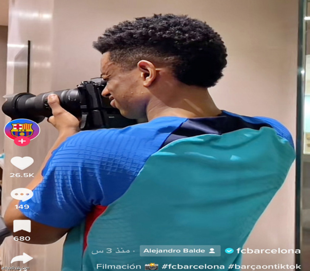 بثَّ حساب نادي برشلونة الإسباني في “تيك توك”، أمس، مقطع فيديو للإسباني أليخاندرو بالدي، مدافع الفريق، يحمل كاميرا لتصوير اللاعبين.