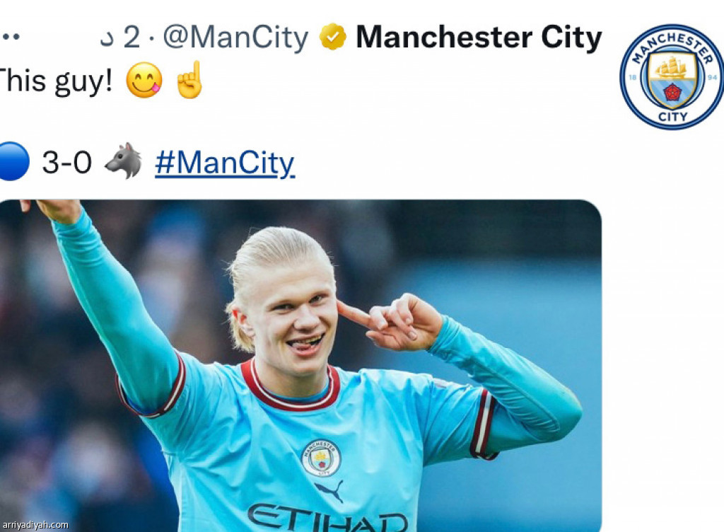 تغنى حساب نادي مانشستر سيتي الرسمي، عبر “تويتر”، أمس، بهاتريك النرويجي إرلينج هالاند، مهاجم الفريق الأول لكرة القدم، في شباك وولفرهامتبون.