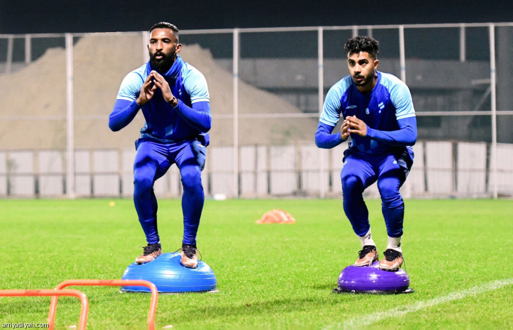 صورة التقطت أمس لحسين المقهوي وفراس البريكان لاعبي فريق الفتح الأول لكرة القدم يؤديان تمارين التحمل قبل انطلاق التدريبات الفنية استعدادًا لمواجهة الوحدة الجمعة المقبل(المركز الإعلامي ـ الفتح)