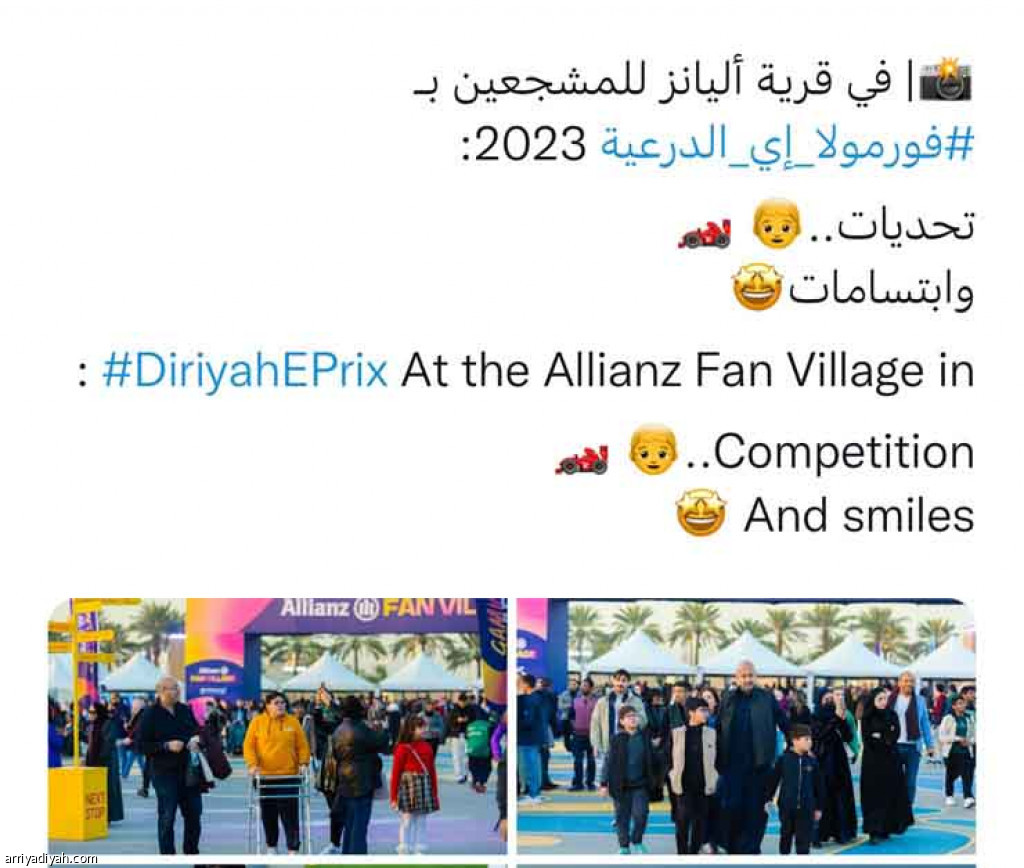 بث الحساب الرسمي لوزارة الرياضة عبر منصة “تويتر”، أمس، صورةً للزوار الحاضرين في قرية أليانز بمقر سباق “فورمولا إي” في الدرعية.