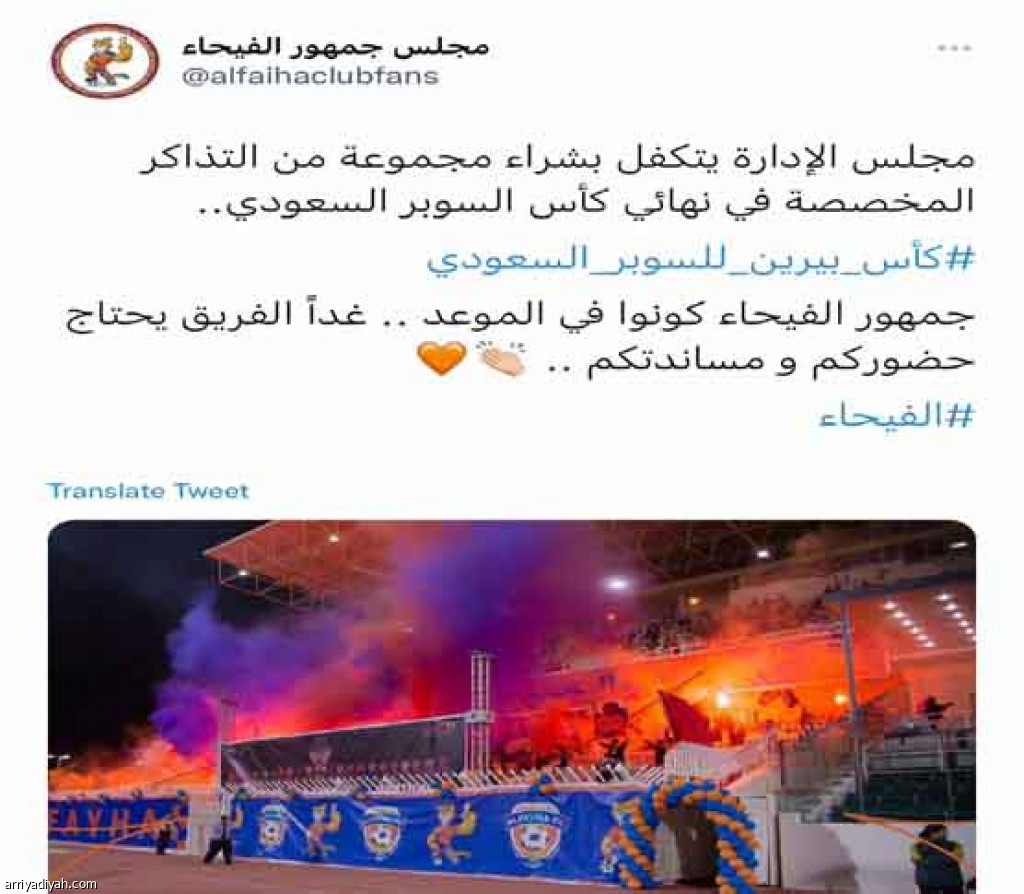 أعلن حساب مجلس جمهور نادي الفيحاء عبر منصة “تويتر”، أمس، عن شراء جزء من التذاكر المخصصة للنادي في مواجهة السوبر السعودي اليوم.