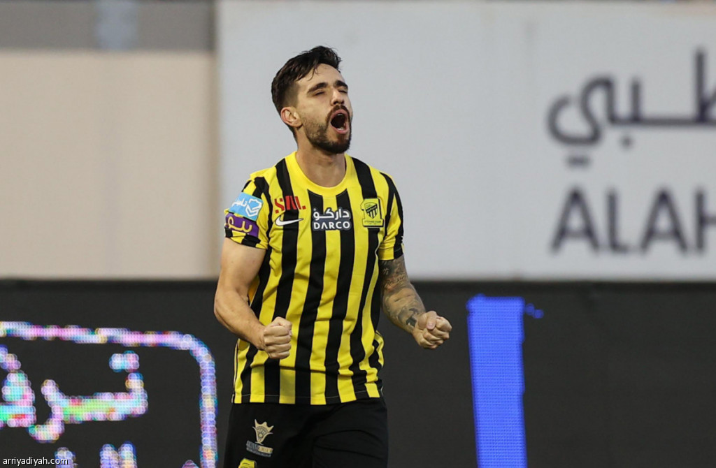 صورة التي التقطت أمس كورونادو يحتفل بعد تسجيله هدف المباراة الوحيد (المركز الإعلامي ـ الاتحاد)