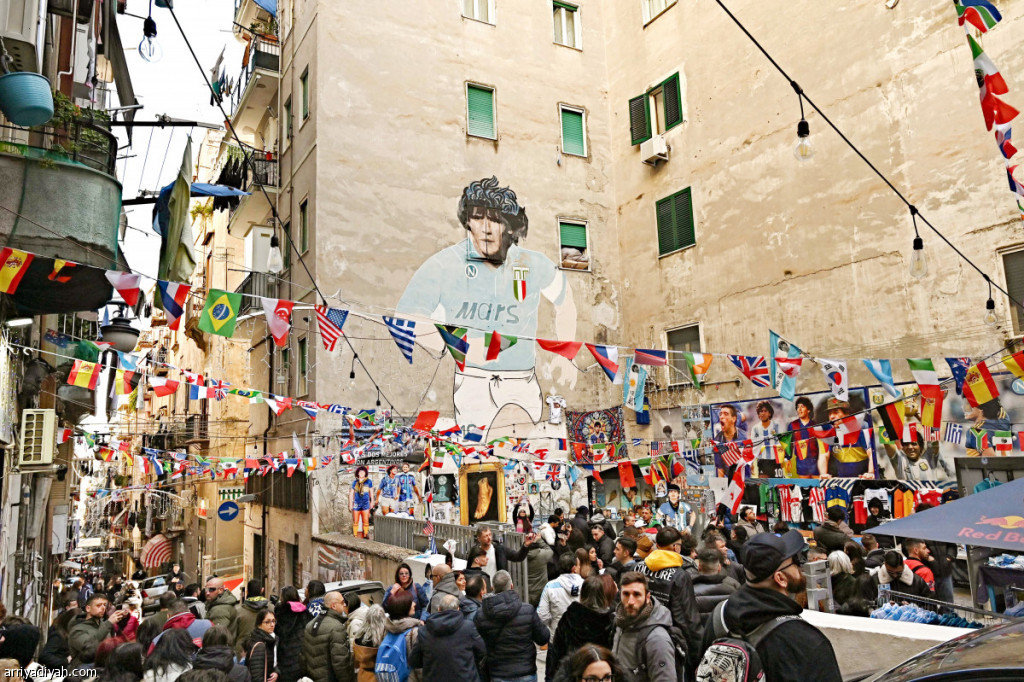 صورة التقطت أمس لجدارية عملاقة على مبنى في نابولي للأرجنتيني دييجو مارادونا الرمز الكبير في المدينة الإيطالية التي يتصدر فريقها الأول لكرة القدم الدوري مقتربًا من أول لقب منذ 1990 المتوج به بقيادة أسطورة كرة القدم الراحل (الفرنسية)