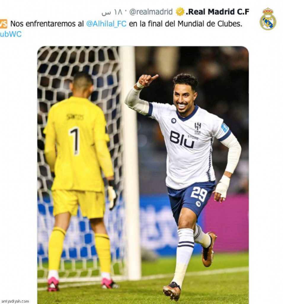 تفاعل مستخدمو موقع التدوينات القصيرة “تويتر”، مع فوز فريق ريال مدريد الإسباني الأول لكرة القدم على الأهلي المصري 4ـ1، ليواجه الهلال في نهائي كأس العالم للأندية، غدًا، وأثنى كثير من المغردين على مستوى الريال أمام بطل إفريقيا، وفوزه عليه برباعية.