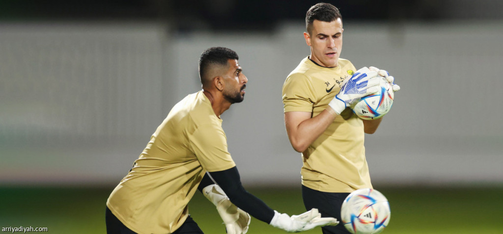 صورة التقطت أمس لعبد الله الجدعاني ومارسيلو جروهي، حارسي فريق الاتحاد، خلال الحصة التدريبية للفريق(المركز الإعلامي ـ الاتحاد)