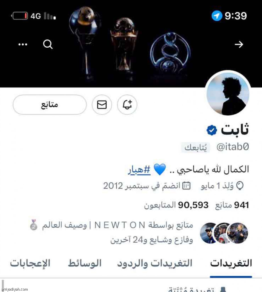 يعدُّ المغرد الهلالي ثابت، الذي يتابعه نحو 90 ألفًا في منصة “تويتر”، أحد المهتمين برياضة