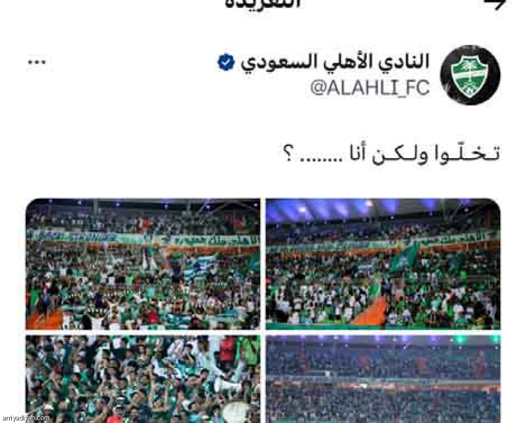 سيطرت تدوينة النادي الأهلي، التي استعرض فيها 4 صور لجماهير الأهلي وعلق: “تخلّوا ولكن أنا..؟”، على اهتمامات مستخدمي “تويتر” خلال الـ48 ساعة الماضية بتسجيلها أرقامًا قياسية وصلت لـ 1.1 مليون مشاهدة و1.5 ألف رد و2.4 ألف إعادة تغريد و6.2 ألف إعجاب. وعلى صوت واحد سار غالبية الأهلاويين قائلين: “أنا ما تخليت” من بينهم هتان الحربي، وأوس، وريان. ووجدها الإعلامي بندر الشهري فرصة لإعادة تغريدة تغنى فيها بجماهير الأهلي قائلًا: “وجود الأهلي في دوري يلو لم يزد جمهوره إلا قوةً وتماسكًا وتكاتفًا مع كيانهم.. لم ينكسر بل إن هذا الالتفاف الكبير والمؤثر لهذا المدرج قادهم للصدارة.. ومستقبلًا سيعود لمكانه الطبيعي”.