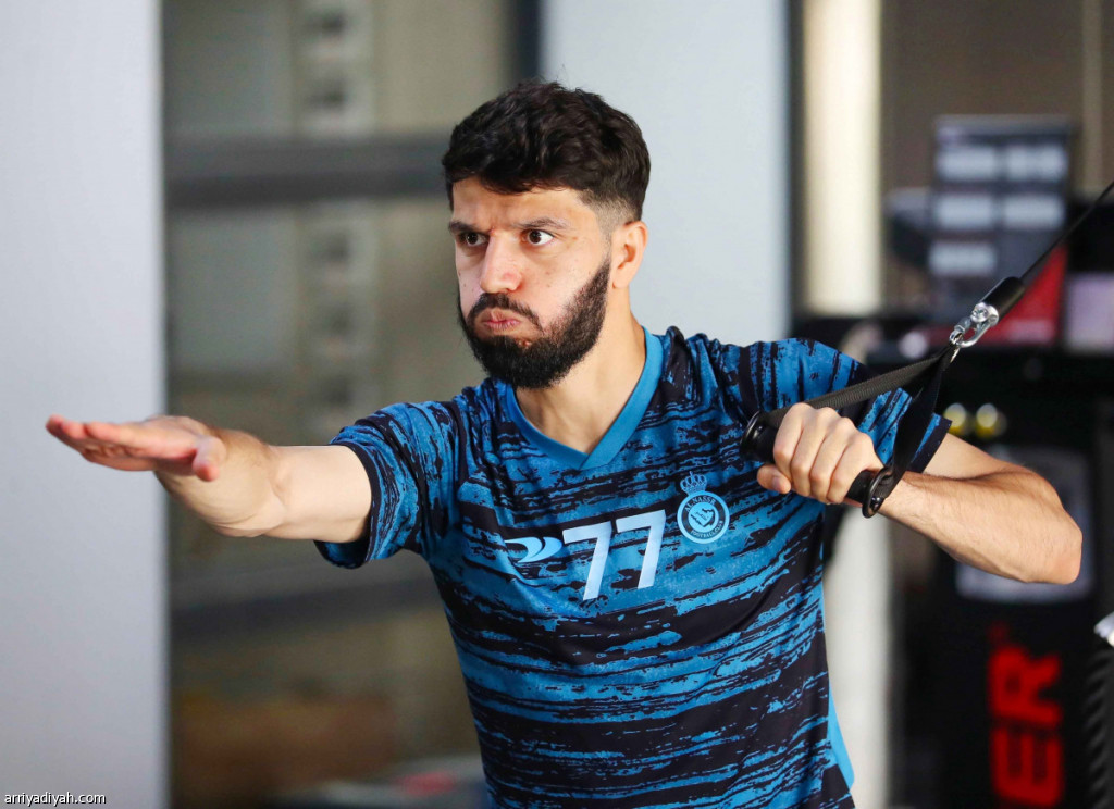 صورة التقطت أمس الأول للأوزبكي ماشاريبوف، لاعب فريق النصر، ينفذ تمارين لياقية (المركز الإعلامي ـ النصر)
