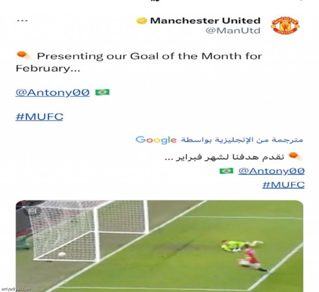 اختار حساب مانشستر يونايتد الإنجليزي، عبر “تويتر”، أمس، هدف البرازيلي أنتوني، مهاجم الفريق الأول لكرة القدم، في شباك برشلونة، الأفضل في شهر فبراير الماضي.