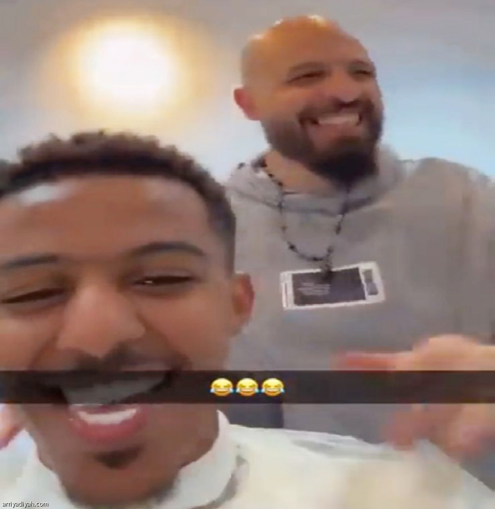نشر الدولي هيثم عسيري، مهاجم فريق الأهلي الأول لكرة القدم، عبر منصة “سناب شات”، أمس، مقطع فيديو وهو يمازح حلاقه الشخصي.