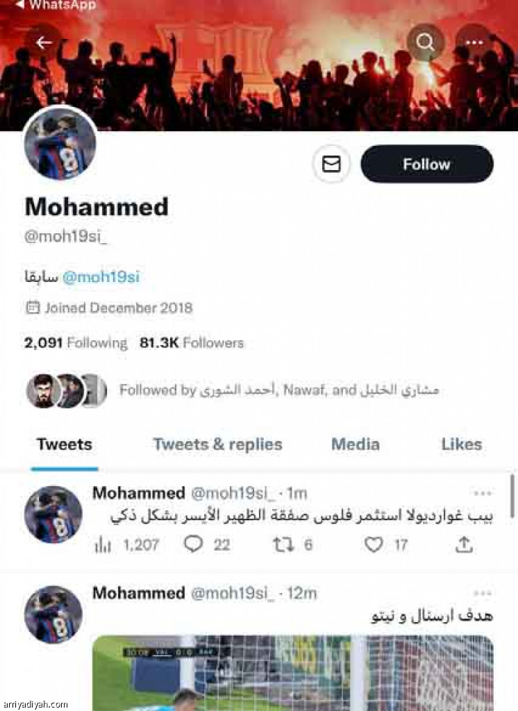 يعدُّ المغرد محمد، الذي يتابعه نحو 81 ألفًا في منصة “تويتر”، أحد المهتمين برياضة كرة القدم ونادي برشلونة الإسباني.. وفي حواره مع “الرياضية” كشف بدايته في تويتر، وتوقعاته لبطل دوري روشن السعودي.