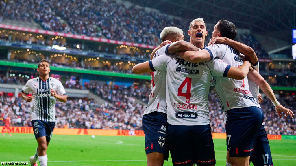 صورة التقطت أمس من احتفالية لاعبي فريق مونتيري الأول لكرة القدم، عند تسجيل الهدف الثالث أمام خواريز، ضمن منافسات الجولة العاشرة من الدوري المكسيكي (تويتر مونتيري)