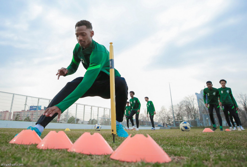 صورة التقطت أمس لعبد الله رديف، رأس حربة المنتخب السعودي للشباب، يشارك في تمرين لياقي، يعتمد على الركض لمسافات قصيرة، خلال حصة تدريبية لـ “لأخضر” في طشقند، عاصمة أوزبكستان، استعدادًا لمواجهة الصين، اليوم، ضمن المجموعة الرابعة من كأس آسيا تحت 20 عامًا (المركز الإعلامي ـ المنتخب السعودي)