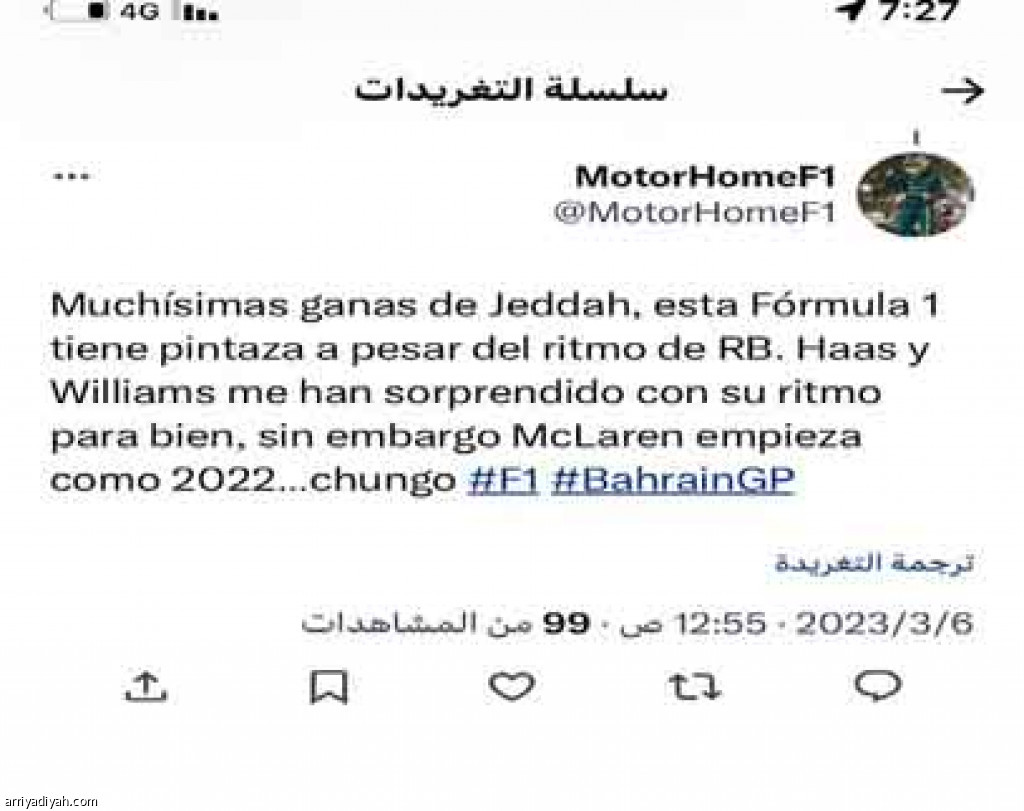 عبر مغردون على موقع التدوينات القصيرة “تويتر”، عن حماسهم لانطلاق الجولة الثانية من سباق الفورمولا 1 على حلبة سباق الكورنيش في جدة، إذ نال وسم فورمولا 1 معدل 2.5 ألف تغريدة في الساعة. ومن بين مستخدمي المنصة، الذين عبروا عن حماسهم، “موتوهوم” قائلًا: “انتظر حقًا فورومولا جدة هذه تبدو رائعة”. ونال النصيب الأكبر في الوسم الهولندي ماكس فيرستابين، المتسابق الفائز في جولة البحرين، أمس الأول، إذ عده البعض الأفضل على مر العصور في اللعبة، من بينهم بريج، وعلى السياق ذاته علق فكسد قائلًا: “الأفضل سيفوز الموسم الجاري”.