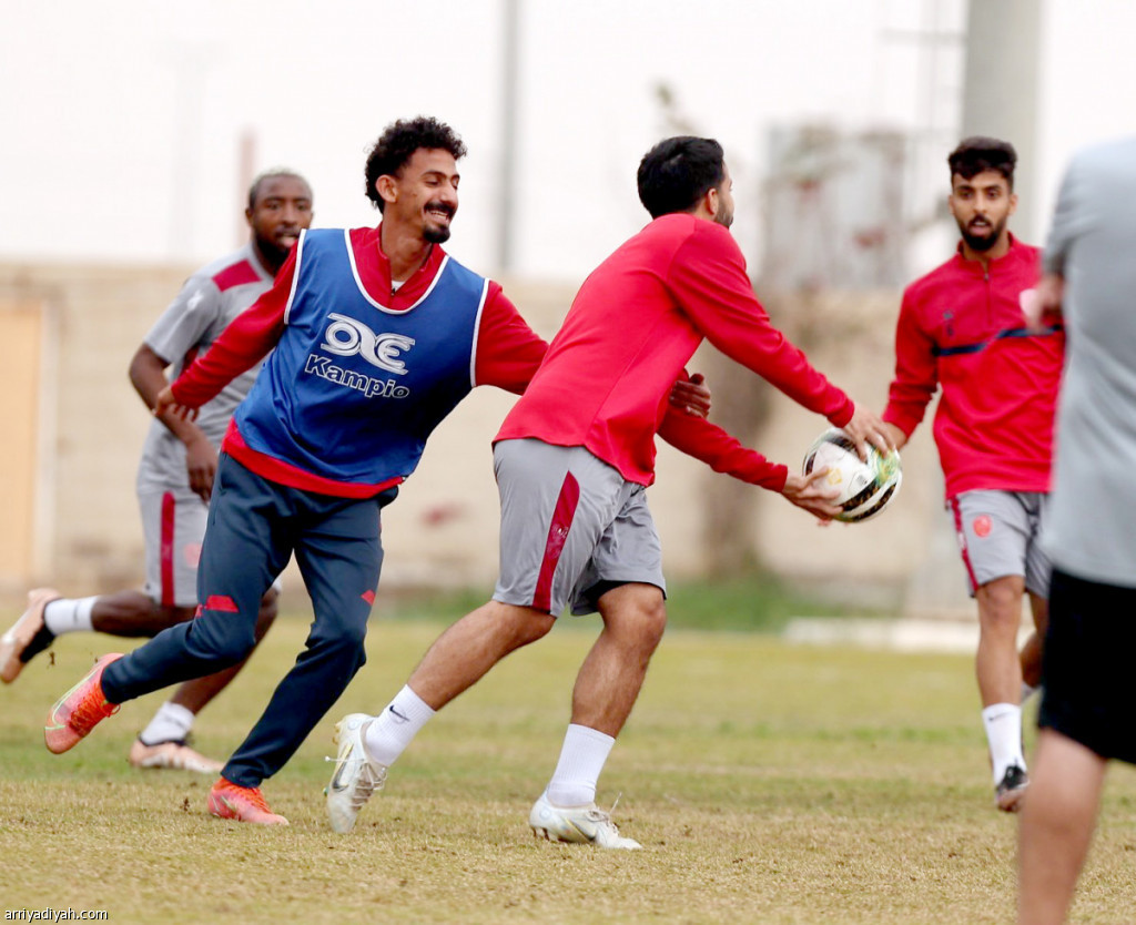 صورة التقطت أمس للاعبي فريق القيصومة الأول لكرة القدم خلال الحصة التدريبية قبل مواجهة الفيصلي (المركز الإعلامي ـ القيصومة)