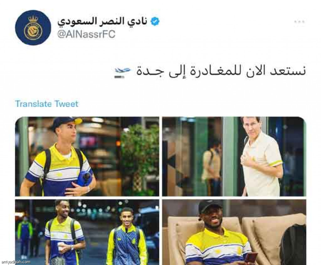 بث حساب نادي النصر عبر منصة تويتر أمس 8 صور لحظة مغادرة الفريق الأول لكرة القدم إلى جدة قبل مواجهة الاتحاد، اليوم، في الجولة الـ 20 من دوري روشن.