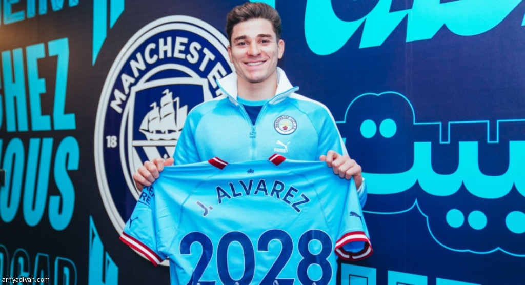 مدد نادي مانشستر سيتي الإنجليزي عقد الأرجنتيني خوليان ألفاريس مهاجم الفريق الأول حتى 2028 .