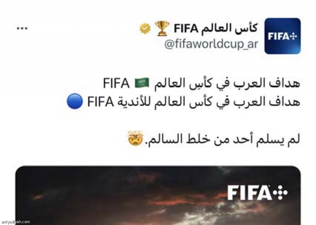 تغنى حساب كأس العالم “فيفا” بالدولي سالم الدوسري، مهاجم فريق الهلال الأول لكرة القدم، بعدما سجل هدف فريقه الثالث أمس الأول أمام الاتفاق قائلًا: “هداف العرب في كأس العالم ‏وهداف العرب في كأس العالم للأندية FIFA لم يسلم أحد من خلط السالم”. ونالت التدوينة تفاعلًا واسعًا بحصدها 322 ألف مشاهدة و116 ردًا و1.7 ألف إعادة تغريد و3 آلاف إعجاب خلال 17 ساعة.