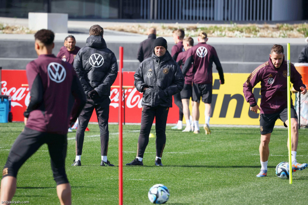 صورة التقطت أمس لهانزي فليك، مدرب المنتخب الألماني الأول لكرة القدم، خلال الحصة التدريبية الأخيرة قبل مواجهة بلجيكا اليوم ضمن تصفيات يورو 2024 (الألمانية)