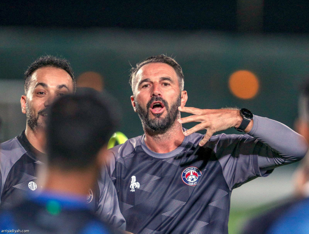 صورة التقطت أمس الأول للسلوفاكي مارتن سيفيلا، مدرب فريق العدالة الأول لكرة القدم، يوجِّه لاعبيه خلال الحصة التدريبية(المركز الإعلامي ـ العدالة)