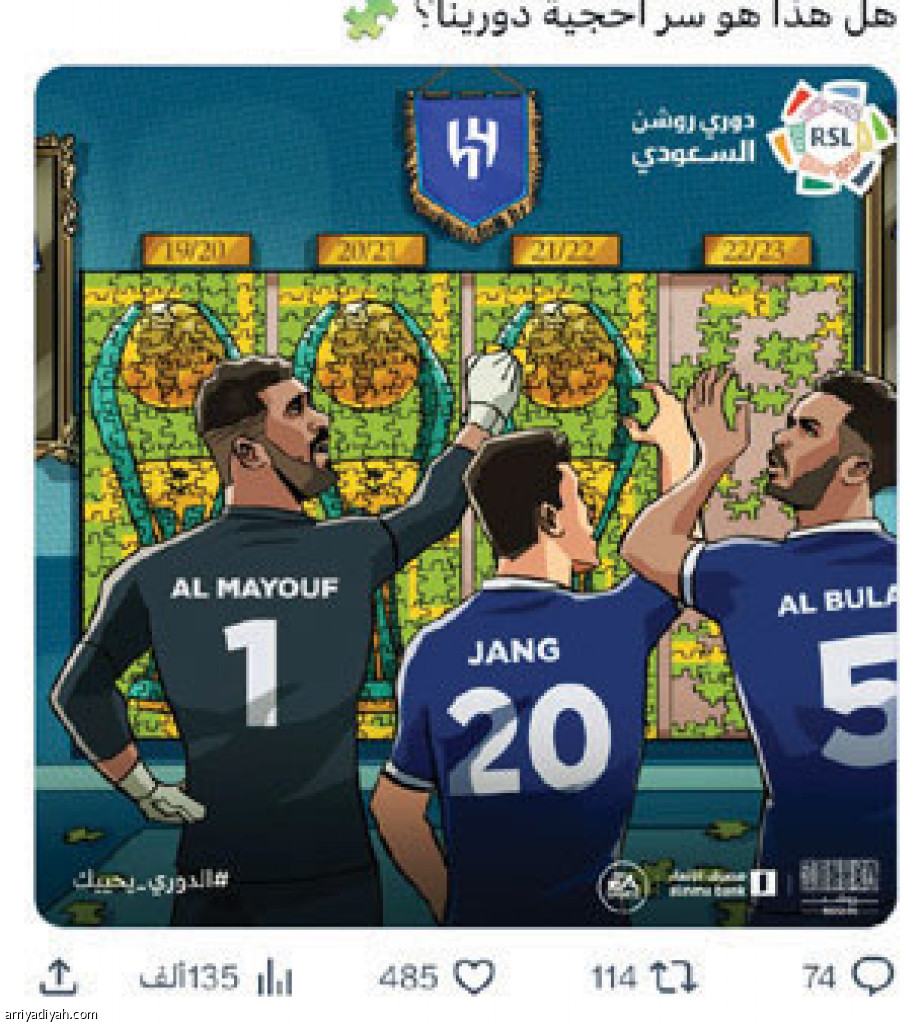 تفاعل مستخدمو موقع التدوينات القصيرة “تويتر”، مع تدوينة حساب دوري روشن السعودي، بعدما نشر سر أحجية كسب المسابقة، وهي أقوى دفاع وأكثر شباك نظيفة، وحصدت التدوينة 62 ردًا، و89 إعادة تغريد، 383 إعجابًا، و88 ألف مشاهدة، خلال ساعة من بثها. وتفاءل الاتحاديون بعد تغريدة “روشن”، من بينهم المشجع “جروهي”: “هالموسم للاتحاد وجروهي يرفعه”، بينما اختلف مهند مع هذا الطرح، قائلًا: “شخصية البطل تحقق لك البطولات، مو قوة الدفاع”.