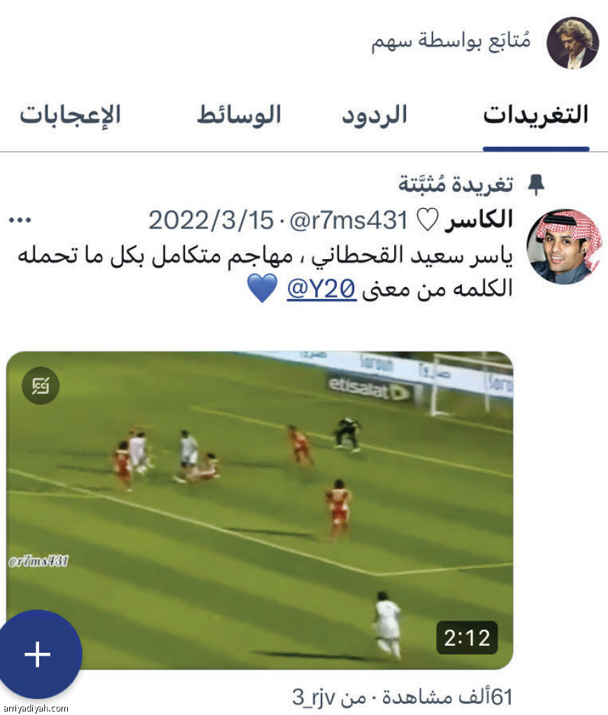 يعدُّ المغرد الهلالي “الكاسر”، الذي يتابعه نحو 18 ألفًا في منصة “تويتر”، أحد المهتمين بكرة القدم.. وفي حواره مع “الرياضية”، كشف “الكاسر” عن بدايته في “الطائر الأزرق”.