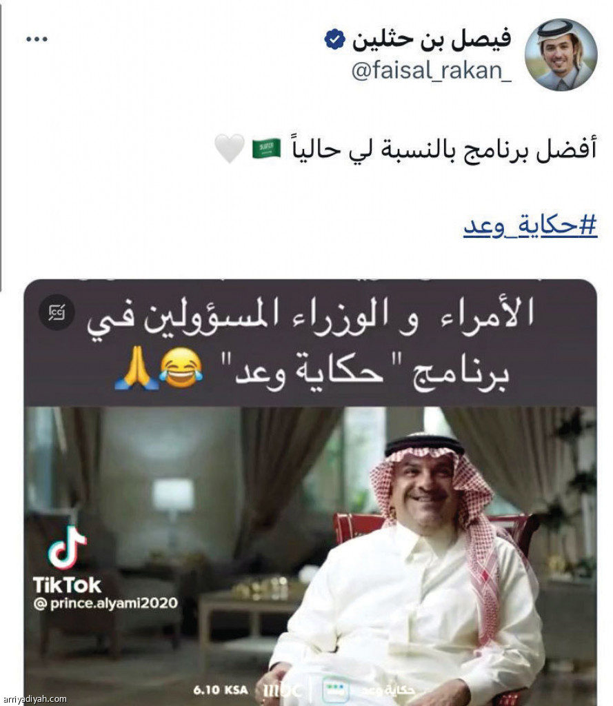 استحوذ برنامج حكاية وعد، الذي يعرض بعد أذان المغرب، وينظر عن كثب على مسيرة التطور في السعودية، بما فيها المشاريع التي وعدت بها رؤية 2030، والإنجازات التي تم ترجمتها على أرض الواقع، على اهتمامات مستخدمي موقع التدوينات القصيرة “تويتر” منذ انطلاقه وحتى الآن.