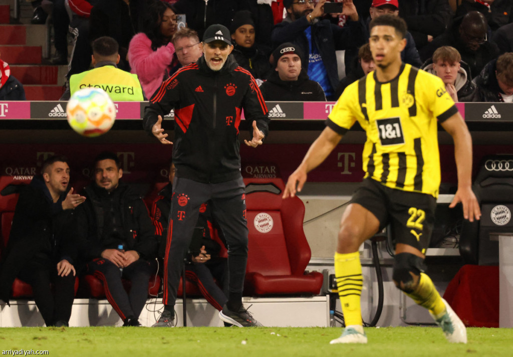 صورة التقطت أمس للألماني توماس توخيل، مدرب فريق بايرن ميونيخ الأول لكرة القدم، يوجّه لاعبيه خلال مباراة بوروسيا دورتموند (الفرنسية)