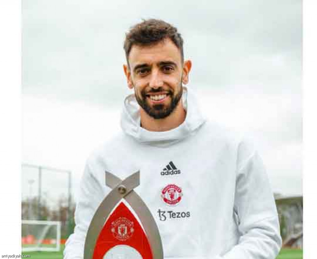 استعرض حساب نادي مانشستر يونايتد الإنجليزي في “تويتر”، أمس، صورة للبرتغالي برونو فيرنانديز، لاعب الفريق الأول لكرة القدم، حاملًا جائزة لاعب الشهر في النادي.