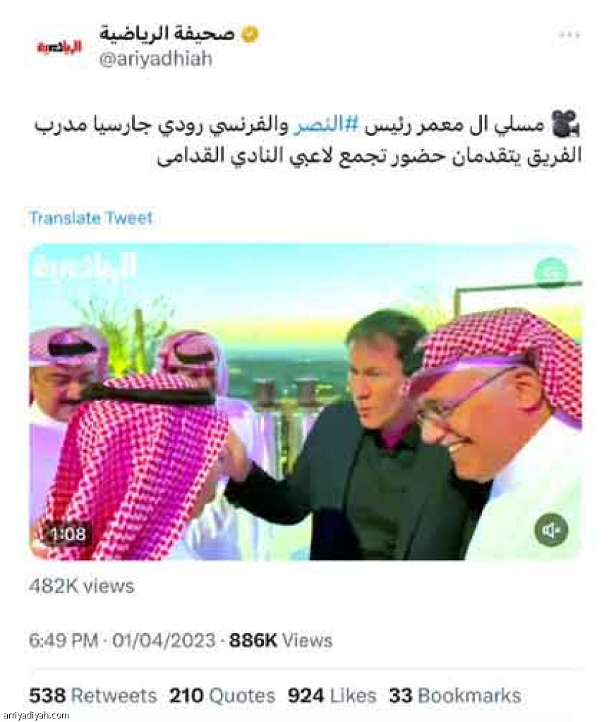 نالت تدوينة حساب “الرياضية”، التي رصدت تنظيم إدارة نادي النصر إفطارًا للاعبي فريقها السابقين، أمس، تفاعلًا واسعًا في موقع التدوينات القصيرة “تويتر”.