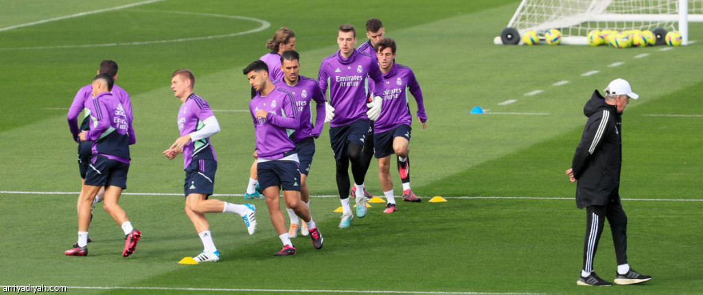 صورة التقطت أمس للإيطالي كارلو أنشيلوتي، مدرب فريق ريال مدريد الأول لكرة القدم، خلال وجوده على أرضية ملعب مدينة فالديبيباس الرياضية للإشراف على حصة تدريبية للفريق الإسباني (الأوروبية)