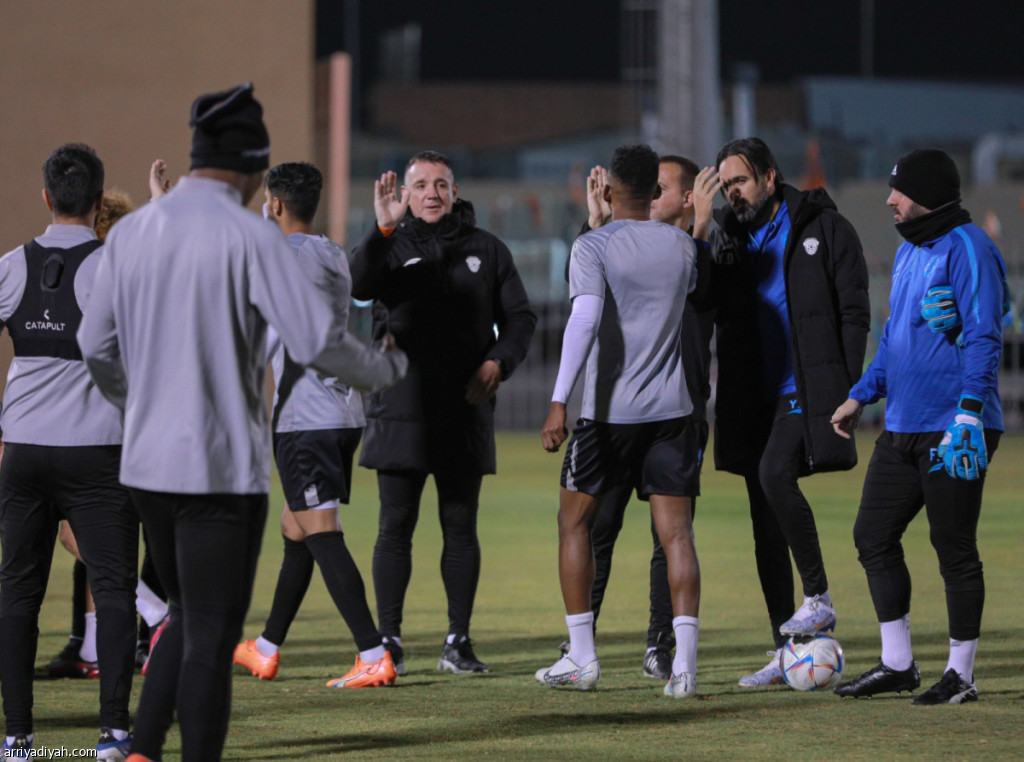 ركّز الصربي فوك رازوفيتش، مدرب فريق الفيحاء الأول لكرة القدم، خلال الحصة التدريبية، الأحد، على تنفيذ الكرات العرضية وركلات الزاوية.