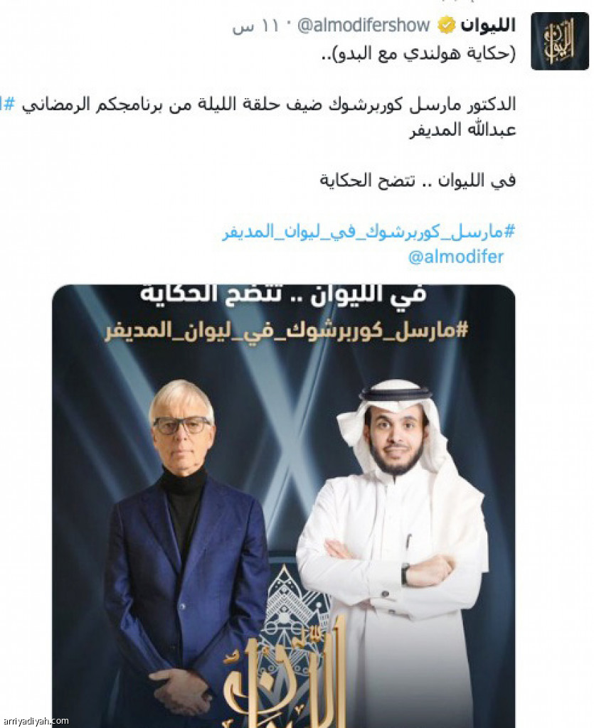 استحوذ برنامج الليوان، الذي يقدمه الإعلامي عبد الله المديفر عبر قناة روتانا خليجية، على اهتمامات مستخدمي موقع الطائر الأزرق “تويتر”، ونال إعجابهم خلال الـ 24 ساعة الماضية، وما قبلها، بعد سلسلة من اللقاءات المثيرة التي قدمها البرنامج، كان آخرها اللقاء مع الشاعر سعد علوش، الذي شاهده أكثر من 1.1 مليون على تويتر، وهو قريب من الرقم الذي حققته حلقة الإعلامي داود الشريان.