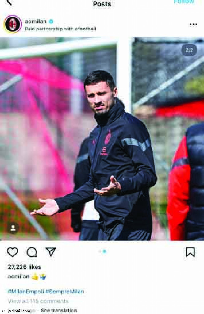 استعرض حساب نادي إي سي ميلان الإيطالي، عبر “إنستجرام”، أمس، مجموعة من الصور خلال الحصة التدريبية للفريق الأول لكرة القدم.