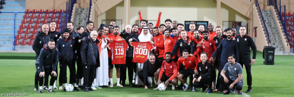 صورة التقطت أمس الأول من تكريم الأجهزة الفنية والإدارية لمحمد سالم، قائد فريق الرائد الأول لكرة القدم وزميله عبد الله الفهد، بمناسبة وصول الأول إلى 300 مباراة والثاني إلى 115 مباراة في دوري المحترفين (المركز الإعلامي ـ الرائد)