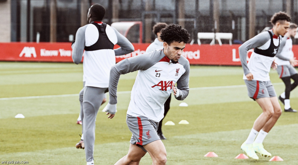 صورة التقطت أمس للكولومبي لويس دياز خلال الحصة التدريبية لفريق ليفربول استعدادًا لمواجهة أرسنال بعد غد (المركز الإعلامي - ليفربول)