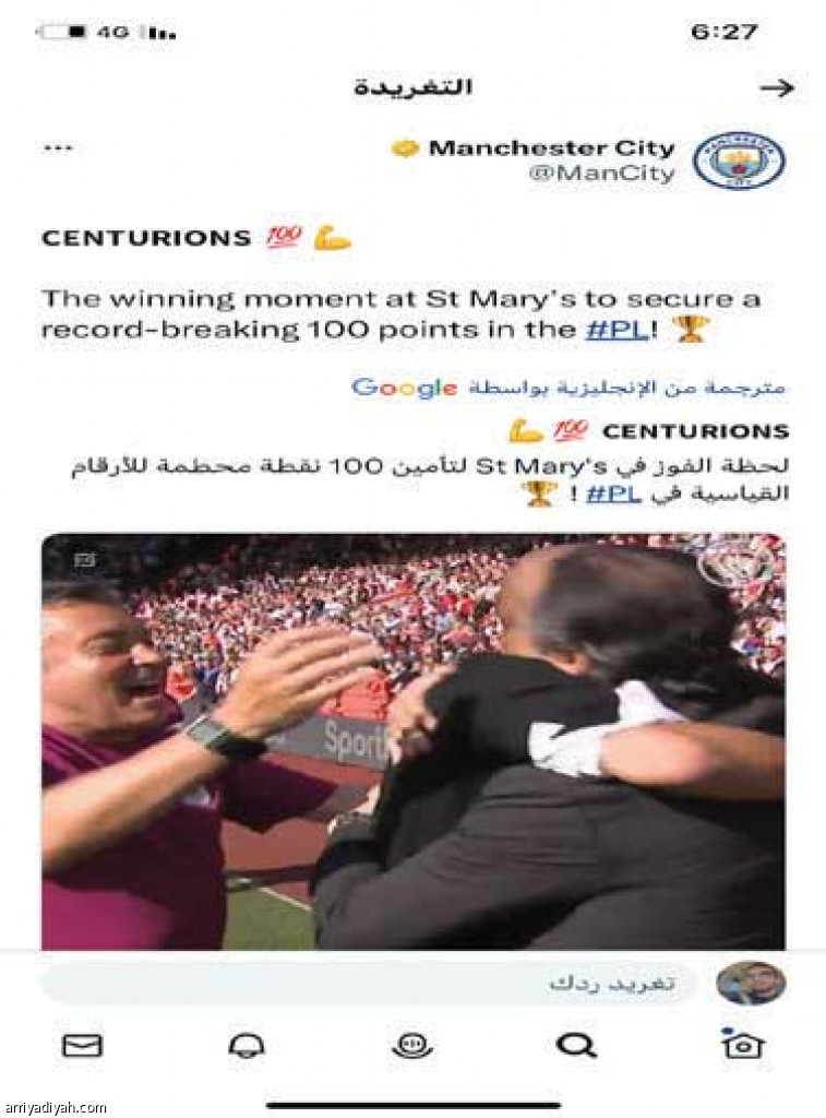 استذكر حساب مانشستر سيتي الإنجليزي، عبر منصة “تويتر”، أمس، تحقيق الدوري 2017ـ2018، بمئة نقطة، الرقم الذي لم يحطم حتى الآن.