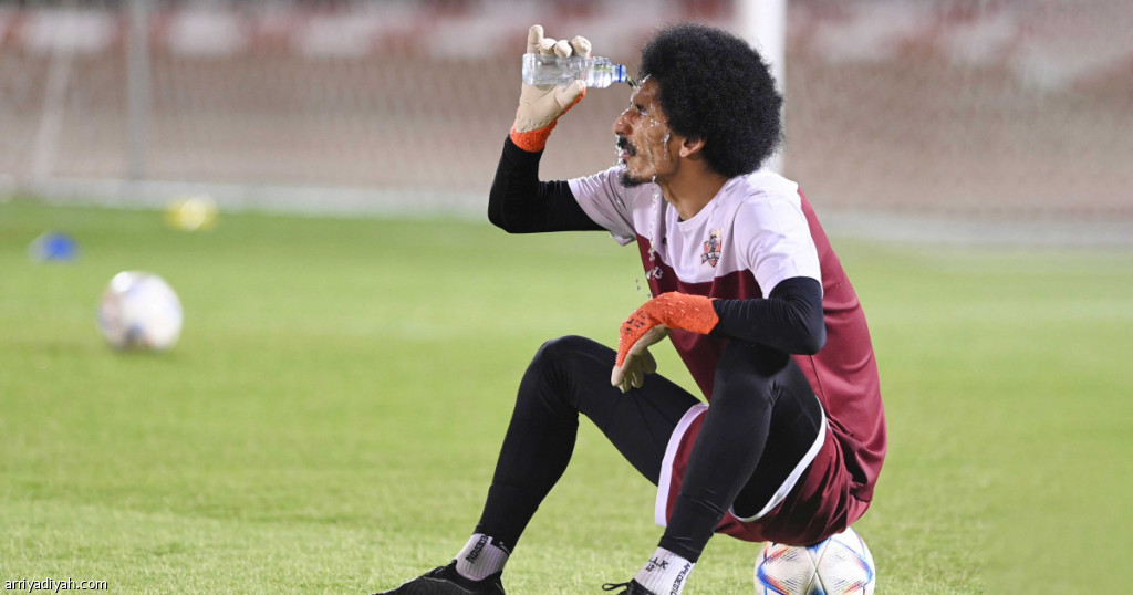 صورة التقطت أمس الأول لعبد القدوس عطية، حارس مرمى فريق الوحدة، يرش وجهه بالماء بعد نهاية التدريبات (المركز الإعلامي ـ الوحدة)