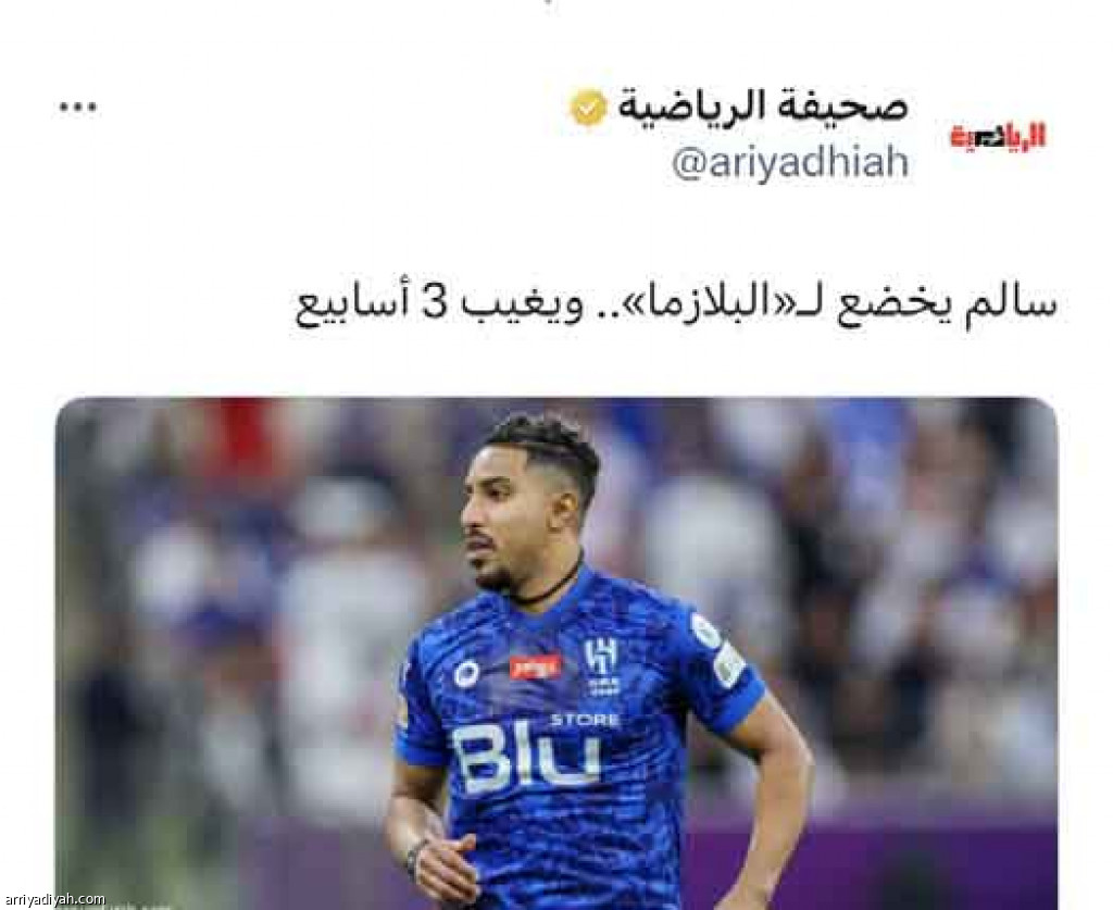 تفاعل مستخدمو موقع التدوينات القصيرة “تويتر”، مع تغريدة خبر صحيفة “الرياضية” الذي كشف عن غياب سالم الدوسري، لاعب فريق الهلال الأول لكرة القدم، ثلاثة أسابيع، بحصدها 59 ردًا و34 إعادة تغريد و20 إعجابًا و57 ألف مشاهدة خلال 50 دقيقة من بثها.