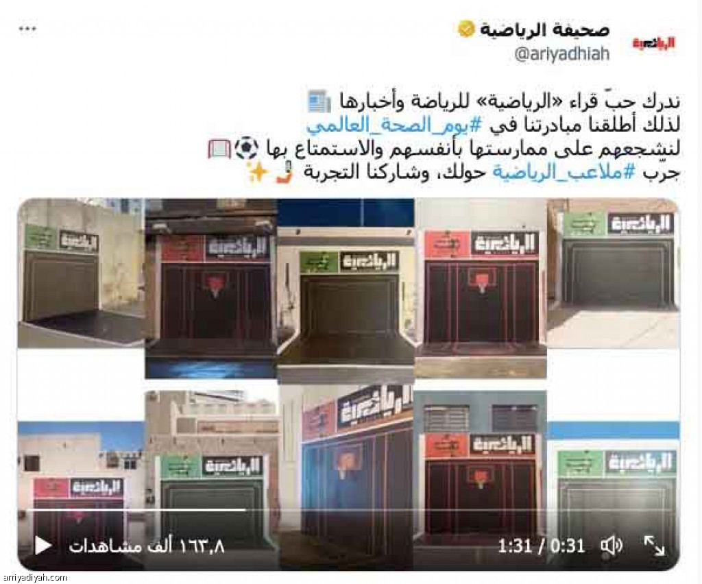 الصحةالعالمي، لنشجعهم على ممارستها بأنفسهم والاستمتاع بها، جرّب #ملاعبالرياضية حولك، وشاركنا التجربة”.