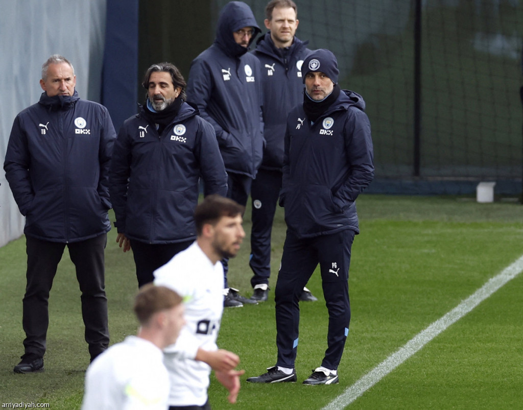 صورة التقطت أمس للإسباني بيب جوارديولا، مدرب فريق مانشستر سيتي الإنجليزي الأول لكرة القدم، قبل انطلاق التدريبات الجماعية استعدادًا لمواجهة بايرن ميونيخ ضمن مباريات ذهاب الدور ربع النهائي من بطولة دوري أبطال أوروبا (الفرنسية)