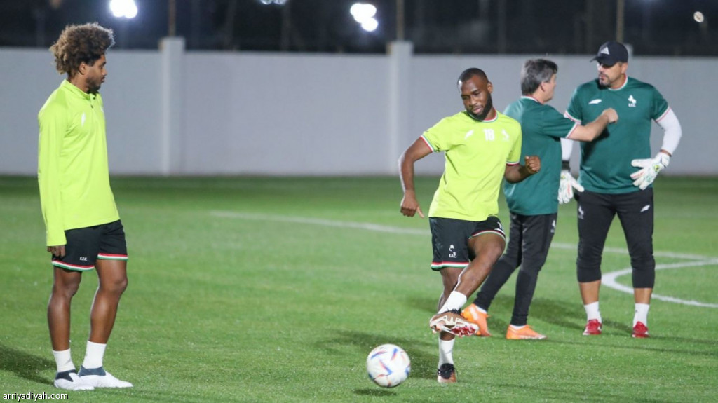صورة التقطت أمس الأول للفرنسي يوسف نياكاتي مهاجم الاتفاق يمرر الكرة أثناء التدريبات (المركز الإعلامي ـ الاتفاق)
